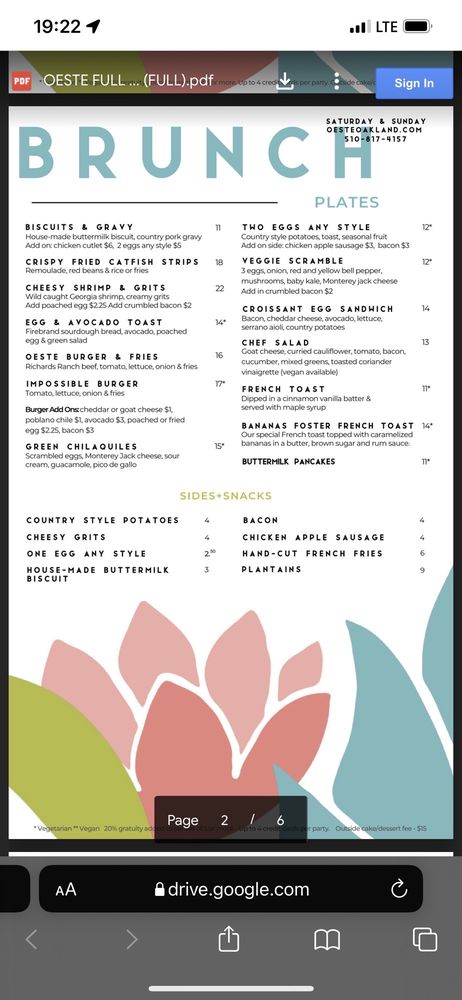 Oeste's menu features a delightful selection of dishes, perfect for any dining occasion. Highlights include the crispy catfish plate with red beans and rice, and their indulgent mac and cheese made with gruyère cheese, ensuring every bite is comforting and flavorful. Pair your meal with innovative cocktails from the full bar or enjoy their satisfying brunch options like the Bananas Foster French toast. Vegetarian and vegan options cater to diverse palates, making this a true gastronomic haven.